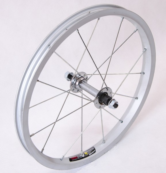 Koło przednie 16". Piasta: Stal HB-16F CZARNA. Obręcz: Alu J20A SR. Szprychy i nyple: Stal SLE Spokes (x16) SR.