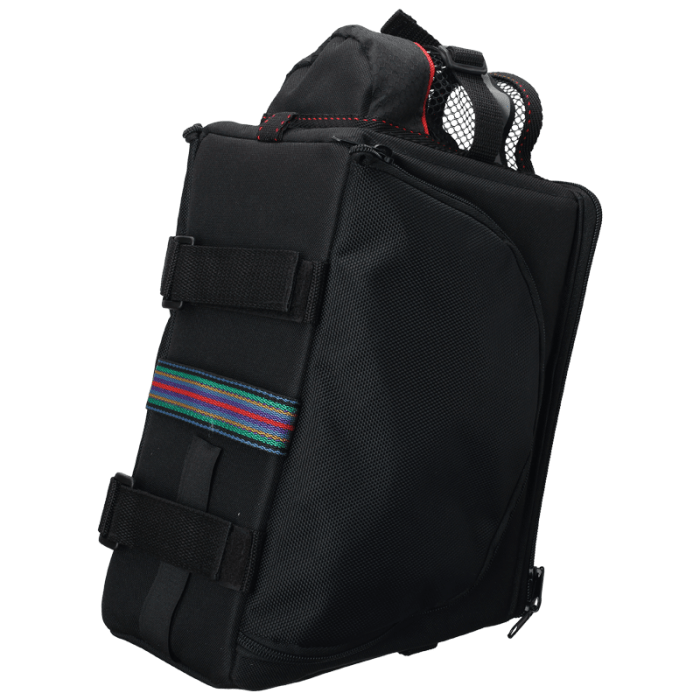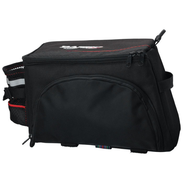 Sakwa BASSO. Kuferek na bagażnik. Możliwość zwiększenia pojemności poprzez rozłożenie bocznych kieszeni. Uchwyt na bidon. Mocowanie: Taśmy na rzep. Tkanina: Poliester 600D. Pojemność: 8 lub 11 litrów.