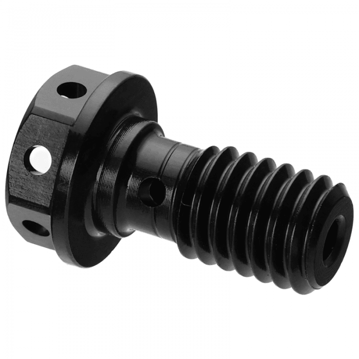 Śruba banjo marki BRAKCO do przewodów hamulców hydraulicznych. Materiał: Aluminium 7075 CNC. Gwint: M6x1.0 /7.5mm. Długość całkowita: 15.7mm. Otwór: 2mm. Pakowane zbiorczo po 2szt.