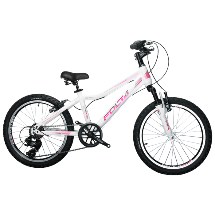 Rower marki FOLTA. Model GALDO. Rozmiar kół: 20". Rama aluminiowa. Widelec amortyzowany. Koła aluminiowe. Przerzutki 1x6s Shimano. Manetki RevoShift. Hamulce V-Brake. Kolor: BIAŁO/CZERWONY