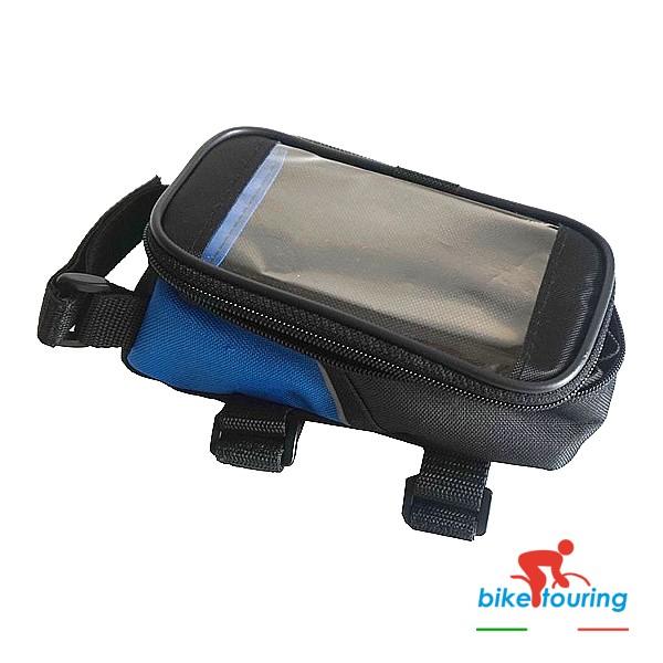 Sakwa BASSO. Mocowana na ramę. Na telefon ok. 5" i drobne przedmioty. Mocowanie: Taśmy z klamerkami samozac. Tkanina: Poliester 600D. Pojemność: 0.8 litra.