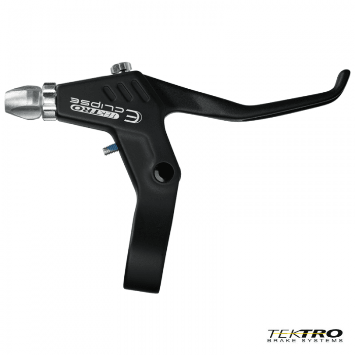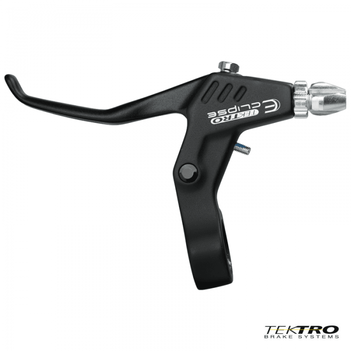 Dźwignie hamulca marki TEKTRO. Model ECLIPSE. Uniwersalne - zarówno do szczęk typu V-Brake jak i Caliper, Cantilever i mechaniczne hamulce tarczowe - posiadają mechanizm zmiany ciągu. Korpus: aluminium. Klamka: aluminium, na 2 palce. Pod manetki typu RapidFire. Waga: ok.174g/para.