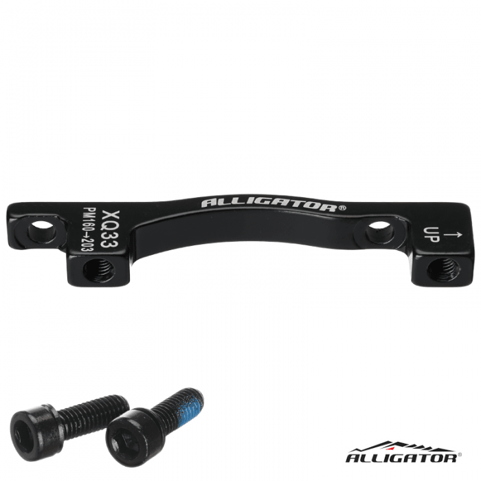 Adapter marki ALLIGATOR do szczęk hamulca tarczowego. Materiał: Aluminium. Kowersja: Widelec Post Mount 160 / Szczęka Post Mount 203mm.