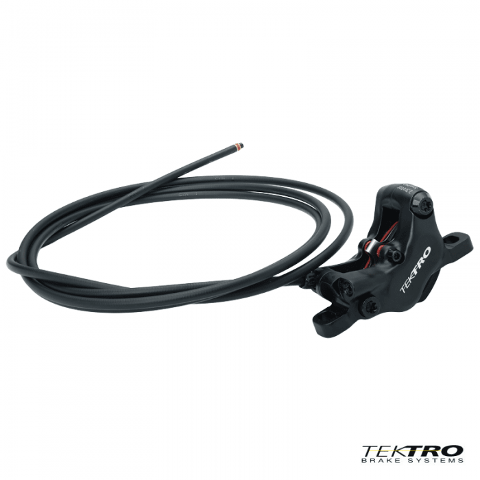 Hamulec tarczowy marki TEKTRO. Model GEMINI SL. Hydrauliczny. Dzwignia: aluminium, na 2palce, prawa. Przewód: 5.0x1900mm. Szczęka 4 tłoczkowa z mocowaniem PostMount. Okładziny Q13RS 5mm. Pod tarcze 2.3mm. Rekomendowany do e-bike'ów z silnikiem centralnym.