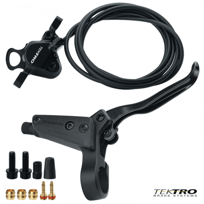 Hamulec tarczowy marki TEKTRO. Hydrauliczny. Dzwignia: aluminium, na 3palce, prawa, zasięg 86-90mm. Przewód: 5.0x1900mm. Szczęka 2 tłoczkowa z mocowaniem PostMount. Okładziny E10.11. Pod tarcze 1.8mm.