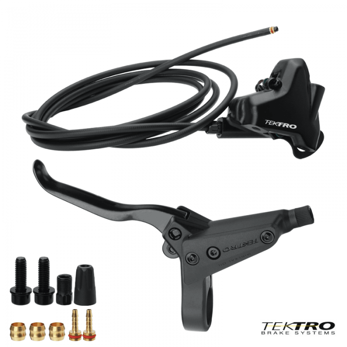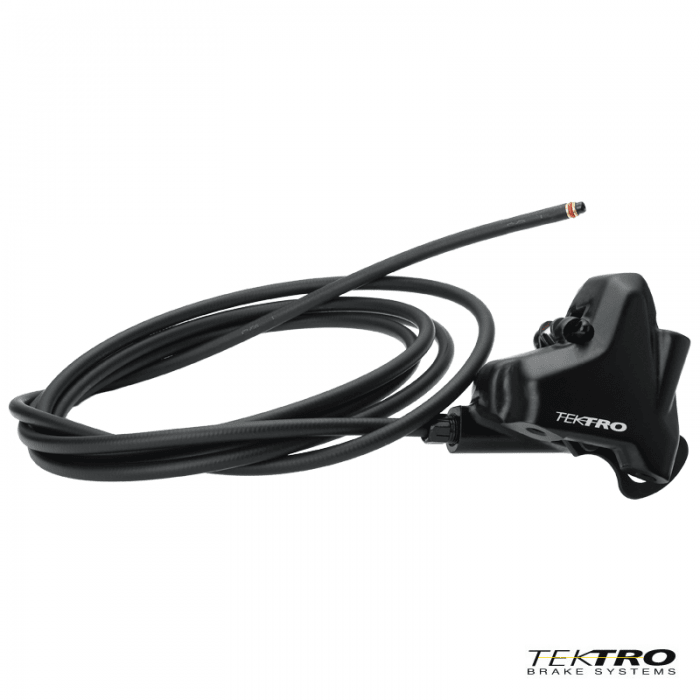 Hamulec tarczowy marki TEKTRO. Hydrauliczny. Dzwignia: aluminium, na 3palce, lewa, zasięg 88mm. Przewód: 5.0x1900mm. Szczęka 2 tłoczkowa z mocowaniem FlatMount. Okładziny E10.11. Pod tarcze 1.8mm.