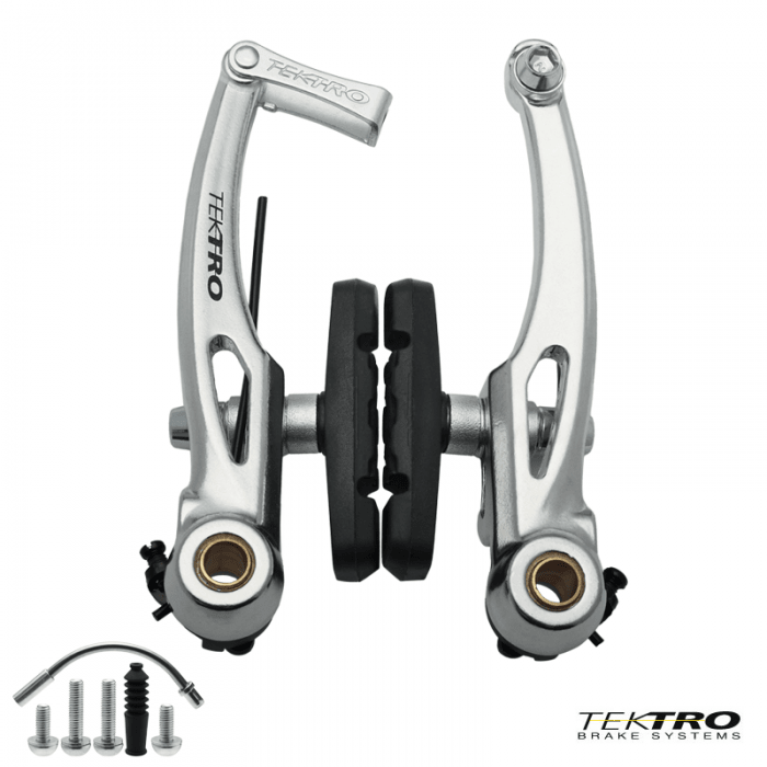 Szczęka hamulca marki TEKTRO. Typ: V-Brake. Materiał: aluminium. Długość ramion 110mm. Sprężyna Linearna (SL). Rozmiar: 20.5-36.5mm. Klocki 836.12. Waga: ok.161gram.