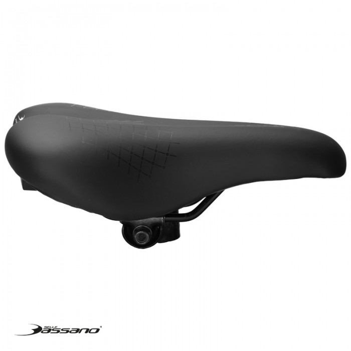 Siodło marki SELLE BASSANO. Długość 275mm. Szerokość 160mm. Szyny stalowe, okrągłe. W komplecie jarzemko.