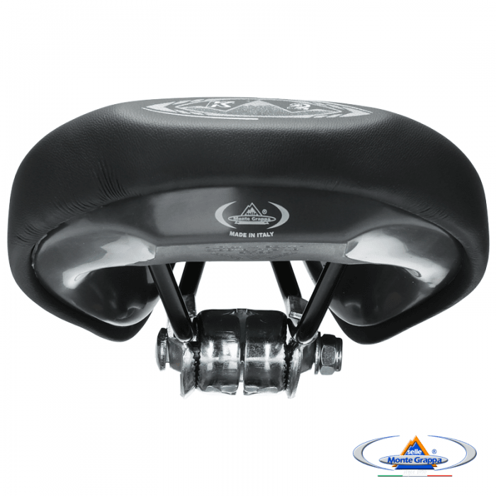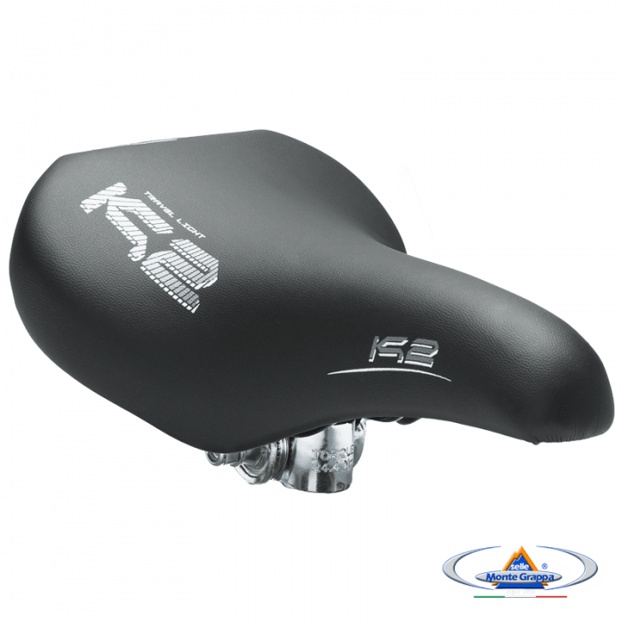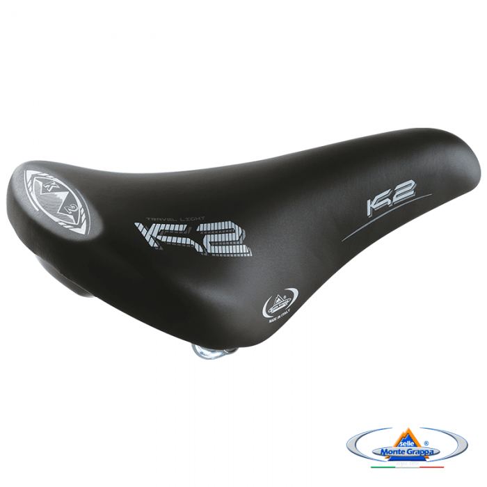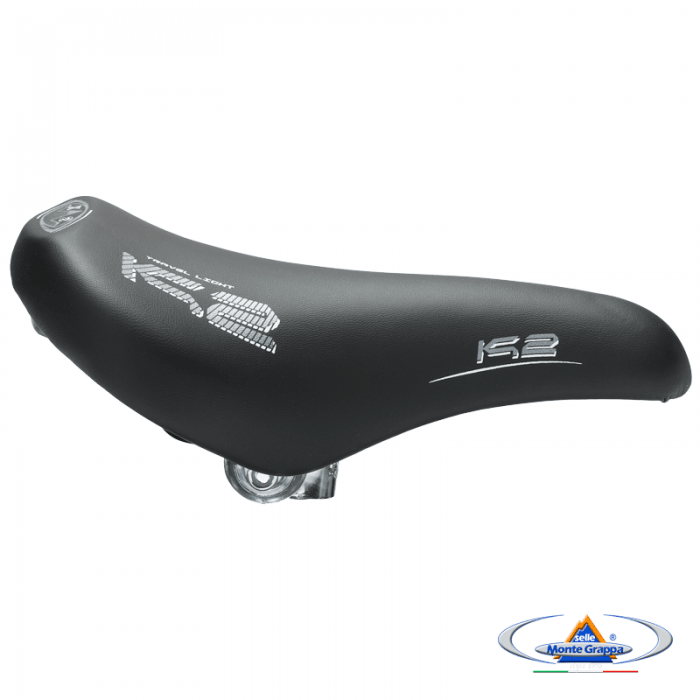 Siodło marki SELLE MONTEGRAPPA. Model K2. Długość 285mm. Szerokość 160mm. Szyny stalowe, okrągłe. Wypełnienie: SMG Memory Foam. Pokrycie: skóra syntetyczna. Skorupa: PPE. Waga ok. 494gram