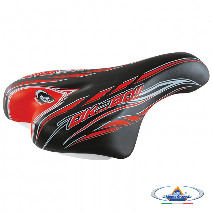 Siodło marki SELLE MONTEGRAPPA. Model OK GO. Do rowerów dziecięcych 16-20". Długość 220mm. Szerokość 145mm. Zintegrowane jarzemko. Wypełnienie: SMG Memory Foam. Pokrycie: skóra syntetyczna. Skorupa: PPE. Waga ok. 300gram