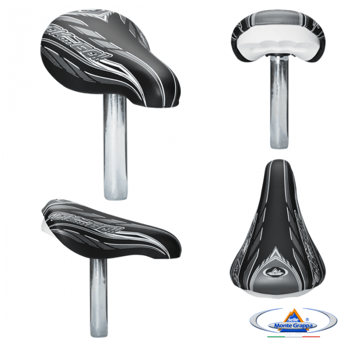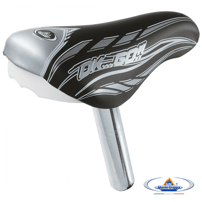 Siodło marki SELLE MONTEGRAPPA. Model OK GO. Do rowerów 12". Długość 210mm. Szerokość 120mm. Zintegrowany wspornik o średnicy 25.4mm. Wypełnienie: pianka PU. Pokrycie: skóra syntetyczna. Skorupa: PPE. Waga ok. 225gram