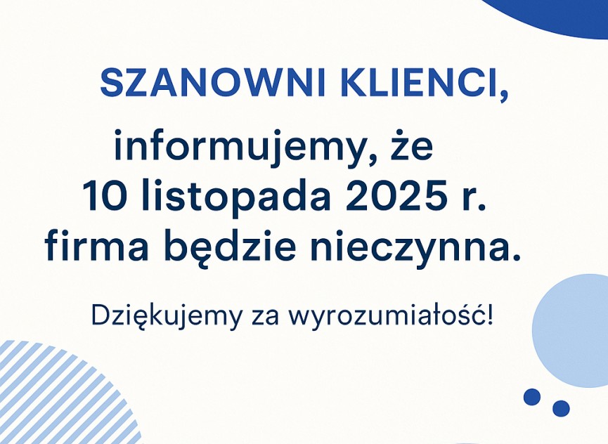 uprzejmie informujemy, że w dniu 10 listopada 2025 r. nasza firma będzie nieczynna.