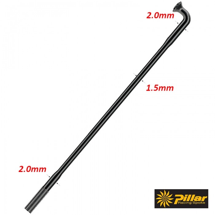 Szprycha PILLAR PDB1417. Cieniowana. Wykonana ze stali nierdzewnej Sandvik T302. Średnica: 2.0/1.5/2.0mm. Gwint: 2.3x9mm (BC 56, DIN 79012). Pakowane zbiorczo po: 18szt. Kolor: CZARNY (oxyd.)