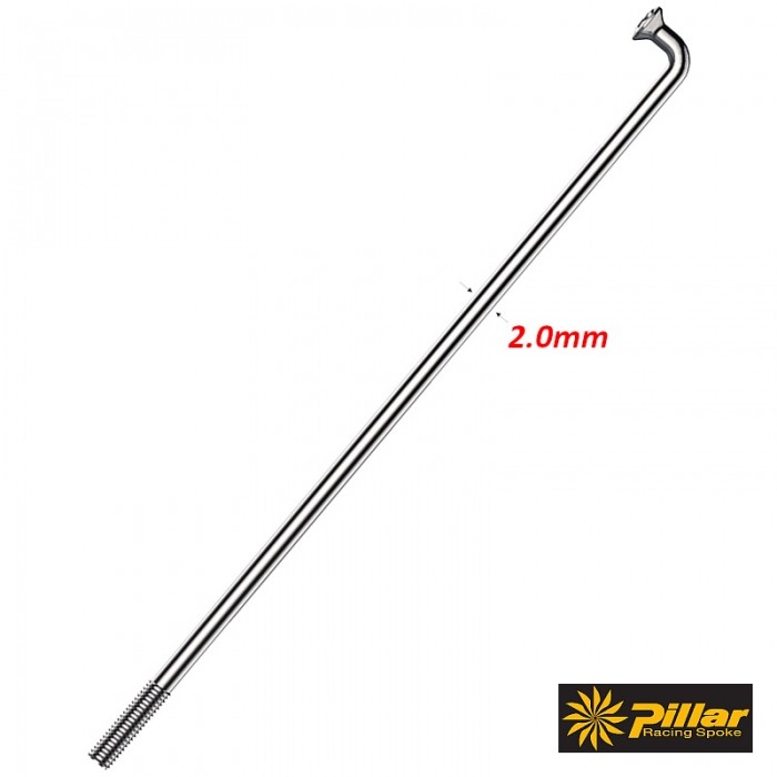 Szprychy PILLAR P14. Wykonane ze stali nierdzewnej Sandvik T302. Średnica: 2.0mm. Gwint: 2.3x9mm (BC 56, DIN 79012). Pakowane zbiorczo po: 18szt. Kolor: SREBRNY