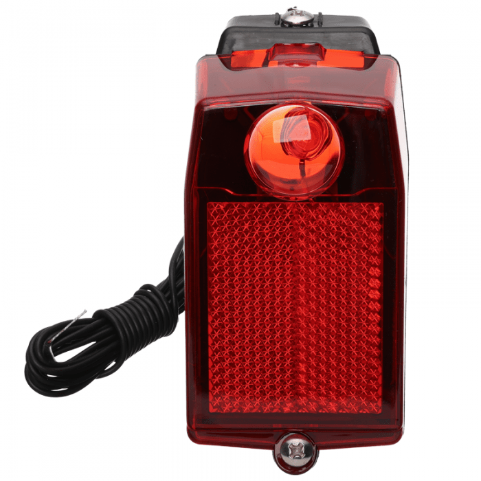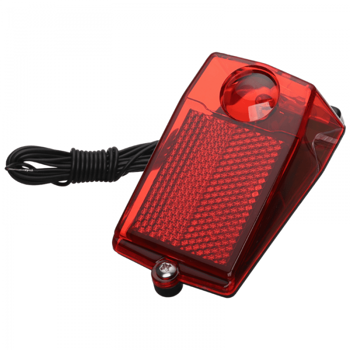Lampa tylna, z odblaskiem. Źródło światła 1xLED. Zasilana z prądnicy rowerowej. Montowana na błotnik.