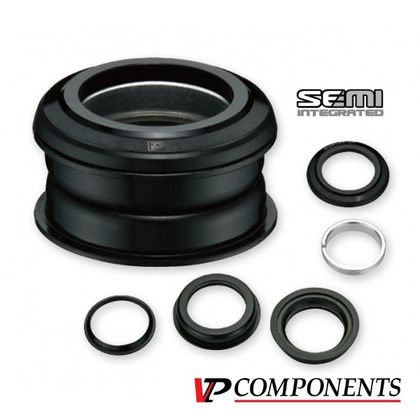 Stery VP Components. Aluminiowe. Półzintegrowane. Do widelców: Ahead 28.6mm. Miski: 41.4mm. Konus: 30mm. Kartrydżowe koszyki kulek. Wysokość: 9.3mm. Waga: 76gram.