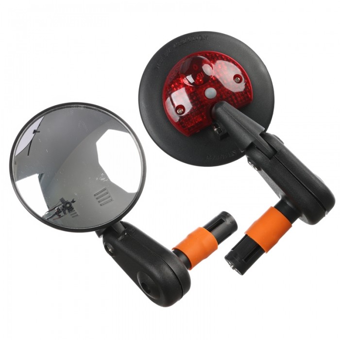 Lusterko rowerowe. Okrągłe 3". Zwierciadło wypukłe. Posiada wbudowane światło ostrzegawcze LED w kolorze czerwonym. Mocowane w kierownice o średnicach wewnętrznych 15-22mm.