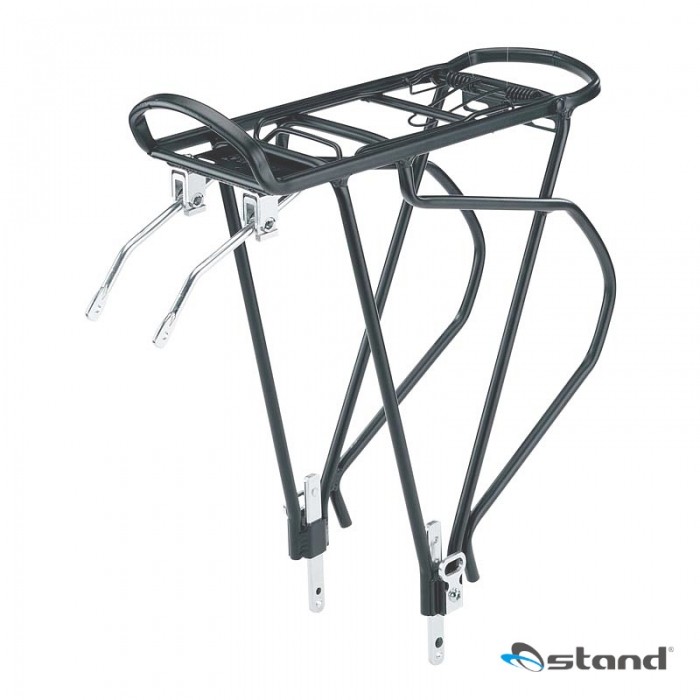 Bagażnik marki Ostand/TranzX. Materiał: Aluminium. Regulowany - do rowerów 26" i 28". Regulowane uchwyty mocujące do ramy. Posiada uchwyt na odblask.