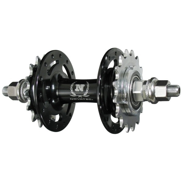 Piasta NOVATEC. Aluminiowa. Przeznaczona do rowerów torowych. Oś: CrMo M10x165mm na nakrętki. Szerokość: 120mm. 2 łożyska maszynowe (CH). Gwinty: Fix/Fix. W komplecie zębatki 16T/17T i kontry. WAGA: 262gram.