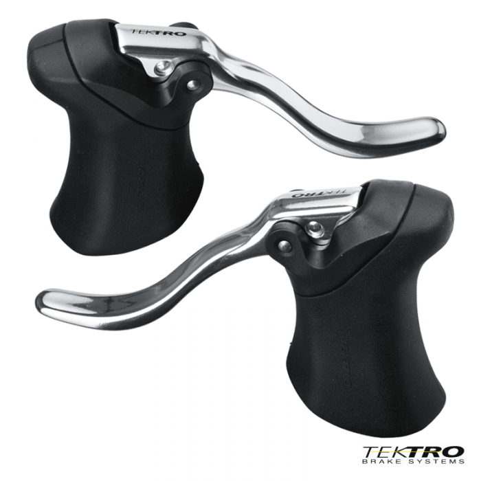 Dźwignie marki TEKTRO. Do hamulców typu caliper. Przeznaczone do rowerów szosowych z kierownicami typu baranek. Korpus: PVC+Guma. Klamka: Aluminium. Waga ok.320gram/para