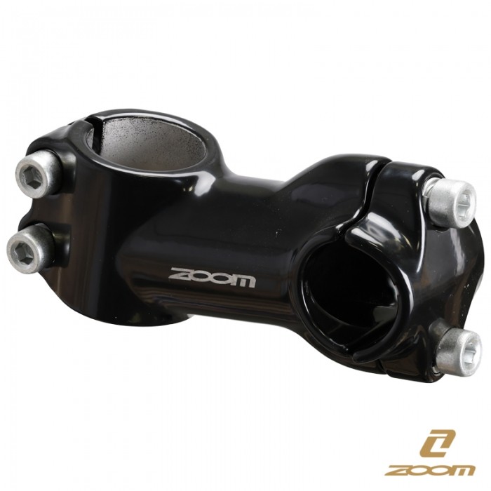 Wspornik kierownicy ZOOM. Przeznaczony do rowerów typu MTB. Materiał: Alu. Mocowanie: Ahead 28.6mm. Długość: 75mm. Kąt: +15'. Mocowanie kierownicy: 25.4mm. Wysokość: 41mm.