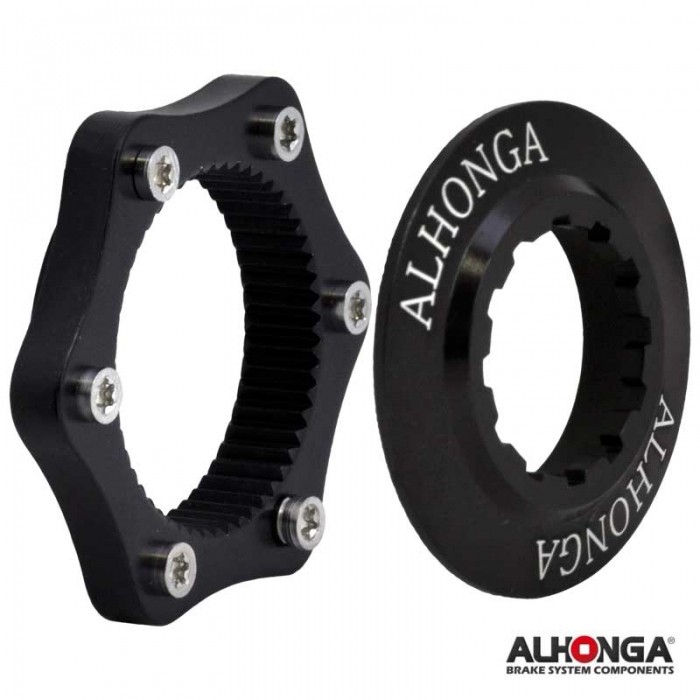 Adapter marki ALHONGA. Aluminiowy. Pozwala na zamontowanie do piasty z systemem CenterLock tarczy na 6 śrub. 2 częściowy.