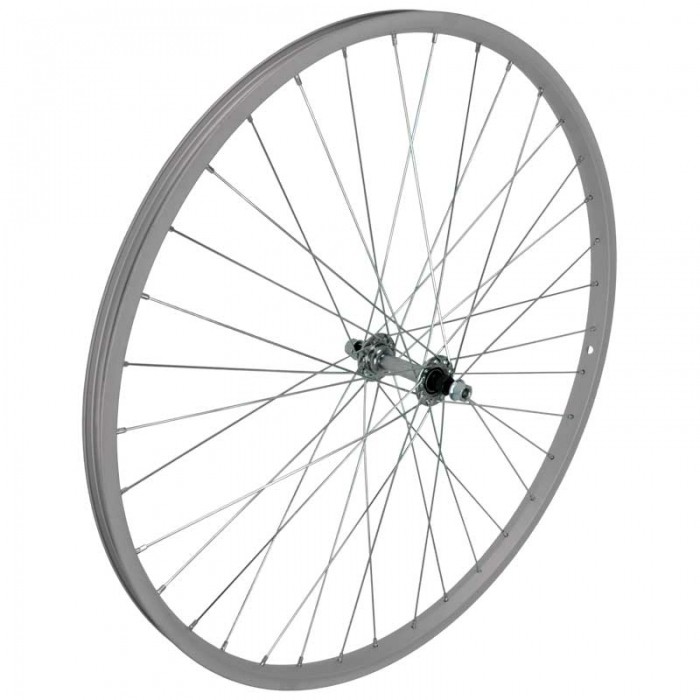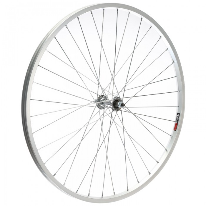 Koło przednie 26". Piasta: Stal HB-36F CP (Oś 5/16", Nakrętki). Obręcz: Alu J20A SR (Pojedyncza 19.8x16.8mm). Szprychy i nyple: Stal SLE Spokes (x36) SR.