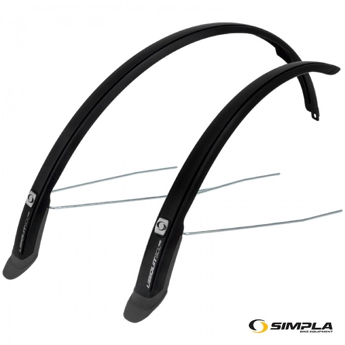 Komplet błotników marki SIMPLA. Wykonane z PCV. Rozmiar: 28". Szerokość: 45mm. W komplecie: Druty, Blaszki mocujące, Śruby.