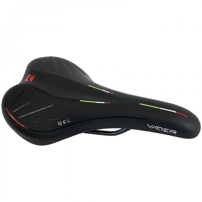 Siodełko rowerowe marki VADER. Przeznaczone do rowerów typu MTB. Żelowe. Wymiary: 275x155mm. CZARNE