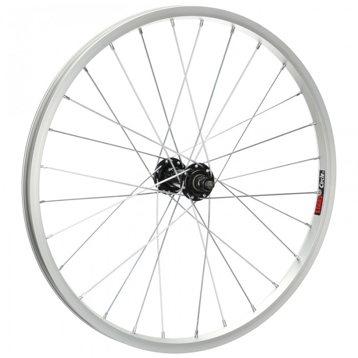 Koło przednie 20". Piasta: Stal JY-433 CZ. Obręcz: Alu J20A SR. Szprychy i nyple: Stal SLE Spokes (x28) SR.