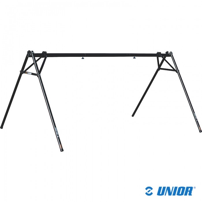 Stojak wystawowo-magazynowy marki UNIOR. Przeznaczony do zawieszenia do 10 rowerów za siodełko. Wykonany z Aluminium. Szerokość 1260mm lub 2090mm. Wysokość 1193mm. Waga ok. 7.5kg