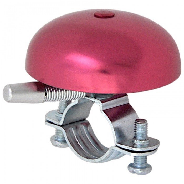 Dzwonek rowerowy. Obejma i podstawa: Stal. Kopułka: Aluminium 50mm. Dźwignia: Stal.