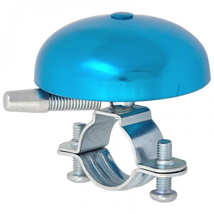 Dzwonek rowerowy. Obejma i podstawa: Stal. Kopułka: Aluminium 50mm. Dźwignia: Stal.