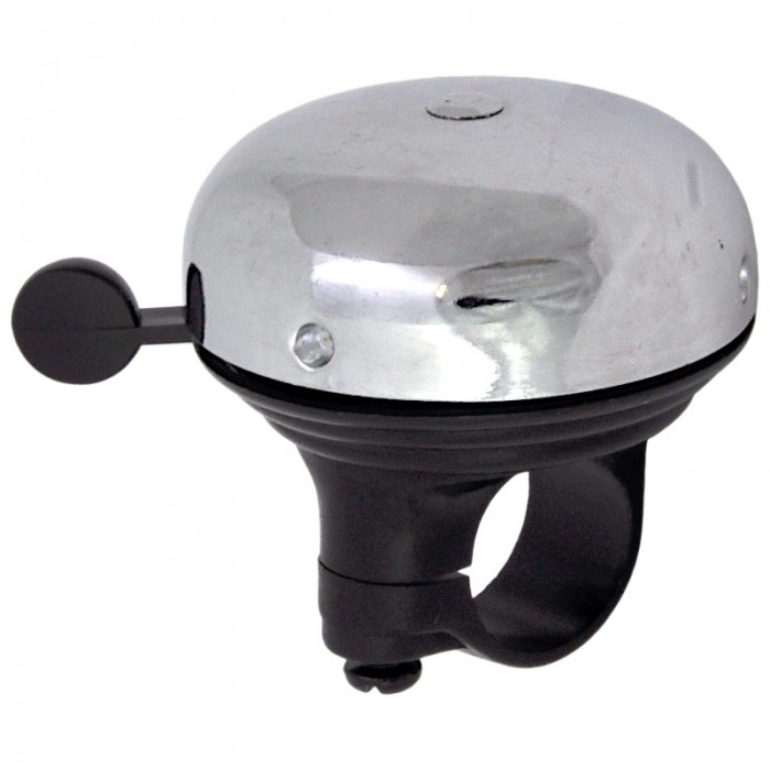 Dzwonek rowerowy. Obejma i podstawa: PVC. Kopułka: Stal 55mm. Dźwignia: PVC.