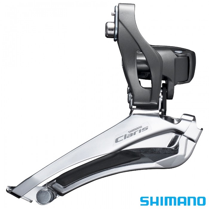 Przerzutka przednia SHIMANO Claris. Przełożenia: 2s. Ciąg: Dolny. Mocowanie: Obejma 34.9/31.8/28.6mm. Do mechanizmów: 52T. Pojemność: 16T. Down Swing. Przełożenia tylne: 8s.