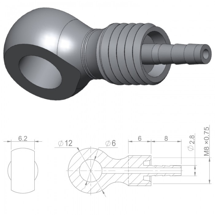 Końcówka banjo marki BRAKCO do przewodów hamulców hydraulicznych. Materiał: Stal Nierdzewna. Igła: 2.8mm. Gwint: M8x0.75. Pasuje do przewodów Hayes (2.5mm). Pakowane zbiorczo po 4szt.
