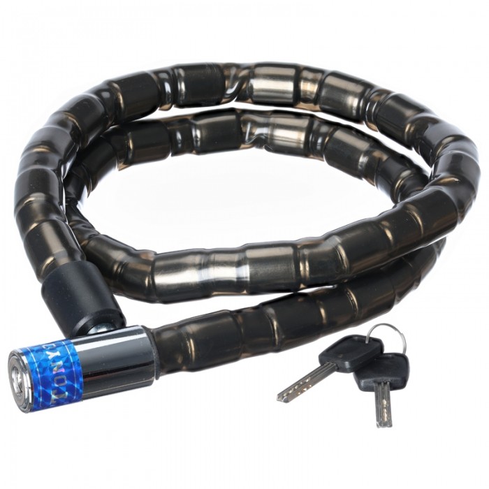 Zamknięcie rowerowe marki TONYON. Pętla. TULEJE. Długość: 1200mm. Średnica linki: 22mm. Zamykane na klucz.