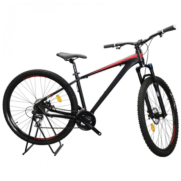 Rower marki FOLTA. Model CABO C1. Typ: MTB. Rama: Aluminiowa 17". Widelec: Alu/Amort. Koła: 29" Alu. Przerzutki: 3x7 Shimano Tourney/Acera. Manetki: STEF. Hamulce: Tarcz.Mech. Shimano. Kolor: CZARNO-CZERWONY