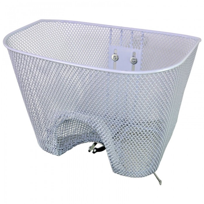 Koszyk marki HAOTU Basket. Przedni. Materiał: Siatka Stalowa. Mocowany uchwytem między miski steru. Posiada wyprofilowaną wnękę pod lampę przednią. Wymiary: 35x25x25cm. Kolor: Biały