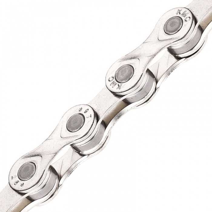 Łańcuch marki KMC (e9 Sport). Przeznaczony do rowerów elektrycznych. Do napędów kasetami 9-biegowymi. Rozmiar ogniwa: 1/2"x11/128". Ogniw: 122. Ogniwo złączne w komplecie. Pudełko KMC