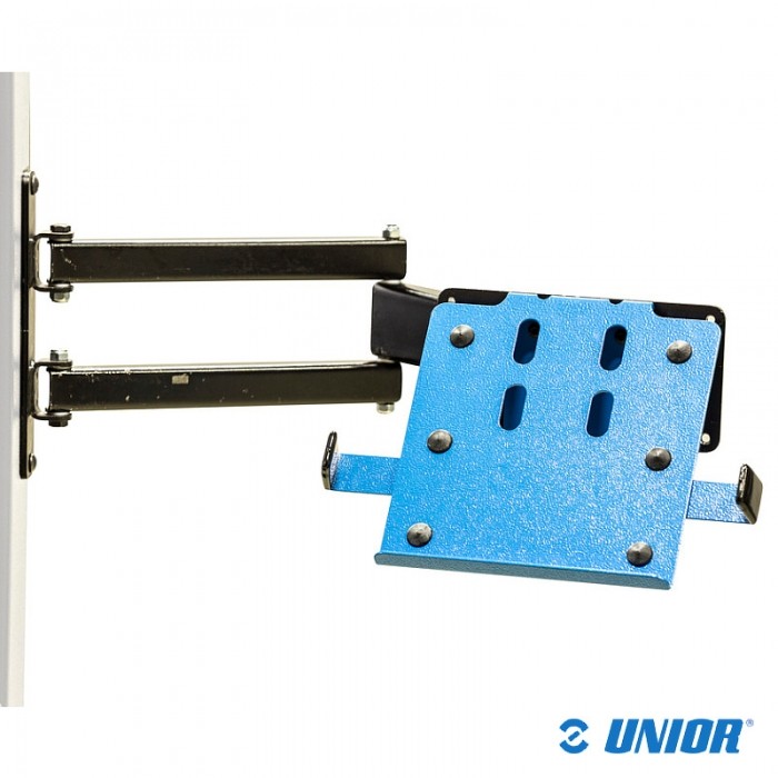 Uchwyt marki UNIOR na tablet o szerkości od 210 do 340mm. Przeznaczony do zamocowania na maszcie stojaka serwisowego, elektrycznego UNR-1693EL. Materiał: Stal. Ruchome ramię 500mm.