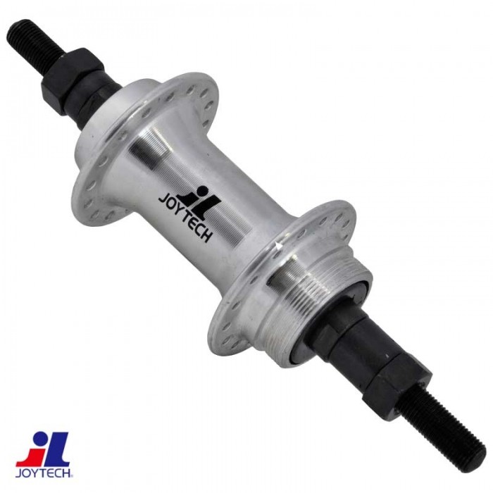 Piasta tylna JOYTECH. Aluminiowa. Przeznaczona do rowerów typu MTB/CITY. Oś: CrMo 3/8"x180mm na nakrętki. Szerokość: 135mm. Kulki. Gwint pod wolnobieg nakręcany. WAGA: ...gram.