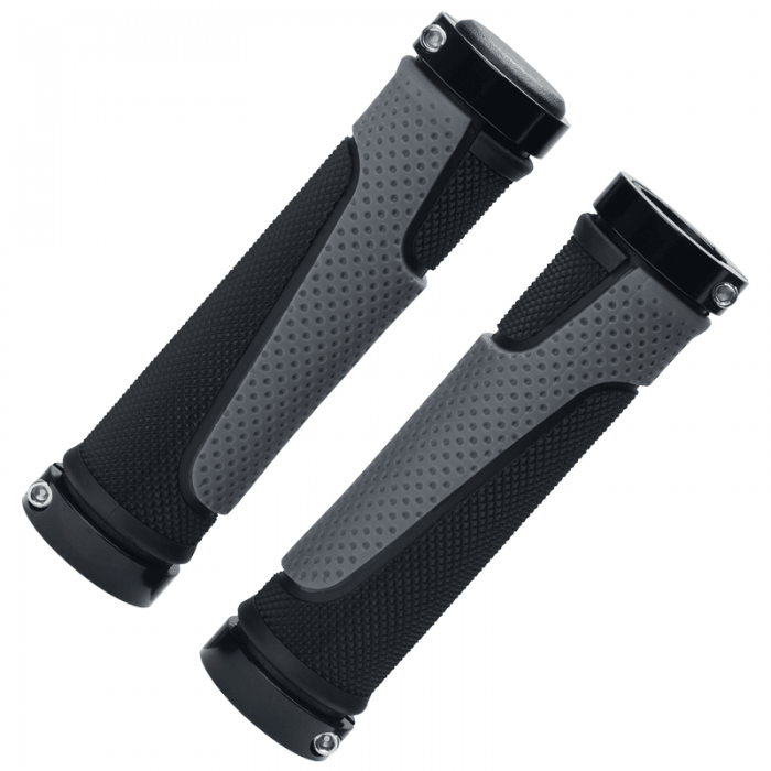 Chwyty kierownicy. Materiał: Kraton. Długość: 130mm. Posiadają 2 aluminiowe obejmy zaciskowe zapobiegające niekontrolowanemu przemieszczaniu się chwytu.