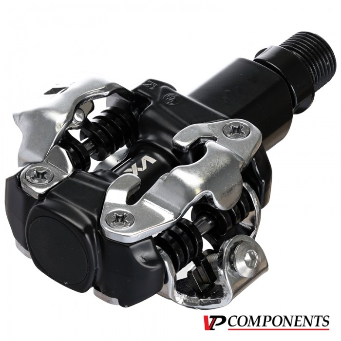 Pedały VP Components. Przeznaczone do rowerów typu MTB i Szosowych. Oś: CrMo 9/16". Kulki. Korpus: Alu. Zapięcia: Stal. Wymiary: 81.0x58.5mm. Kompatybilne bloki: VP-C01 (w komplecie). WAGA: 396g/para.