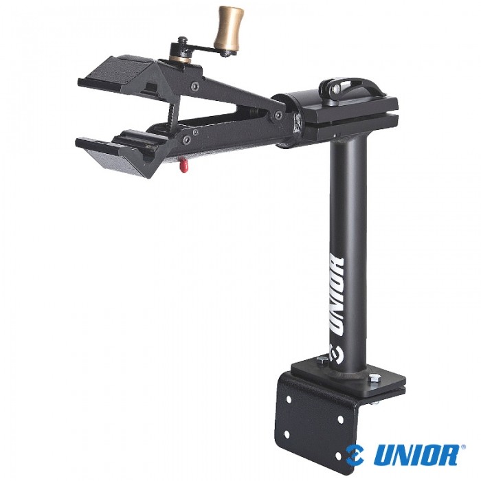 Uchwyt serwisowy marki UNIOR. Przeznaczony zamocowania zarówno na stole warsztatowym jak i na ścianę. Szczęki z mechanizmem szybkiego zamknięcia (QC) i szybkiego otwarcia (QR) - do ram o średnicach 22 - 60mm.