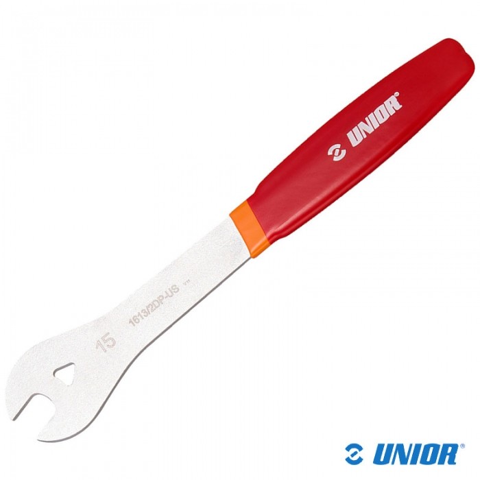 Klucz marki UNIOR. Przeznaczony do pedałów. Rozmiar: 15mm. Materiał: specjalna stal narzędziowa, laserowo wycinana. Długość: 270mm
