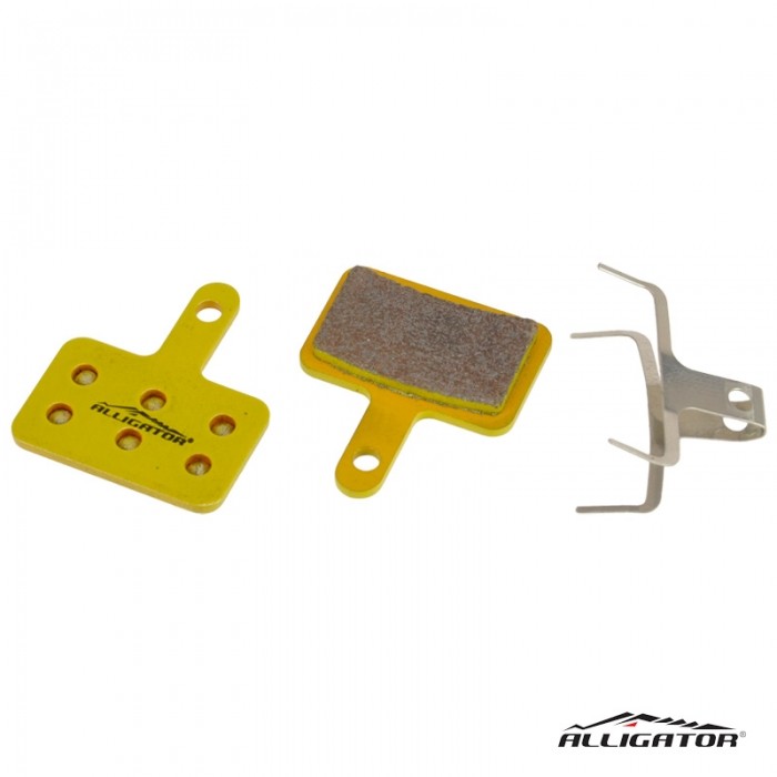 Klocki marki ALLIGATOR do hamulcy tarczowych. Linia Professional. Okładziny: Ceramiczne (spiek). Płytka: Stalowa. Kompatybilne z Shimano: BR-M575,-M525,-M515,-M495,-M486,-M485,-M475,-M465,-M446,-M416,-M415,-M395,-M375,-C501, itp.