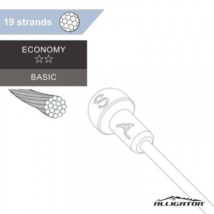 Cięgno hamulca marki ALLIGATOR. Linka 19-żyłowa ze stali galwanizowanej. Końcówka 6 x 11 mm do dźwigni szosowych. Średnica: 1.6mm. Długość: 1700mm. Opakowanie 5szt.