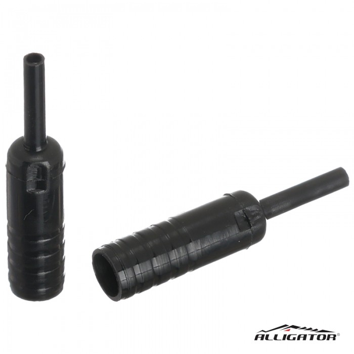 Końcówka pancerza marki ALLIGATOR. Uszczelniana (wkładka mosiężna z gumką), z noskiem. Materiał: PVC. Do pancerzy 4mm. Długosć 17.5mm + Nosek 10mm. Opakowanie 10szt.