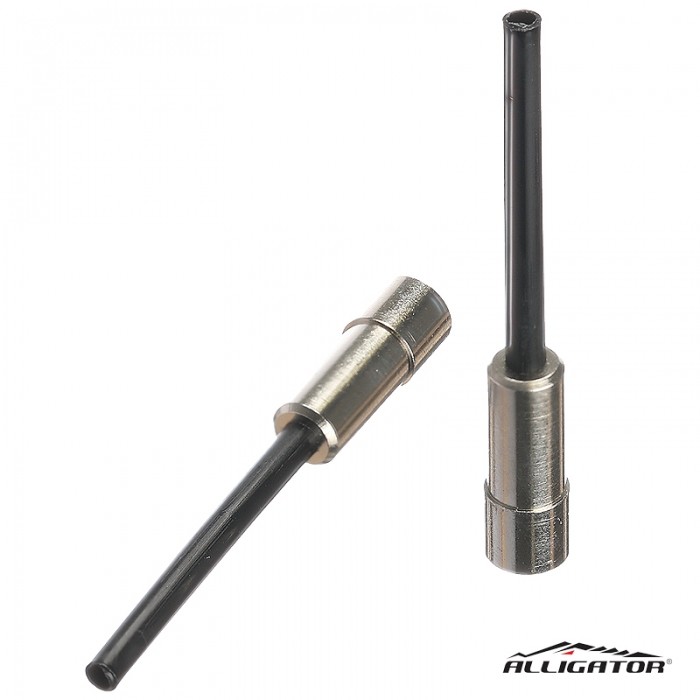 Końcówka pancerza marki ALLIGATOR. Z noskiem. Materiał: Mosiądz CNC (nosek PCV). Do pancerzy 5mm. Długosć 17.5mm + Nosek 29.4mm. Opakowanie 10szt.